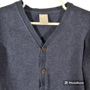 This is a toddler size cardigan sweater from H&M in EUC. The care tag was cut out, so I'm not certain of the fabric type. It feels very soft, so my guess would be cotton. The sweater is a size 1.5 - 2Y. It is a very pretty and versatile deep blue, with 5 buttons.
