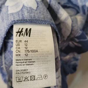 H&M Blue White Floral Vines 100% Viscose Lightweight Dress Sz 12 Vacay Resort