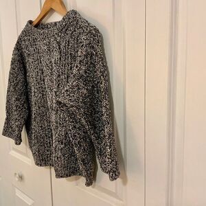 H&M Blue White Marled Cable Knit Cropped Oversized Sweater XS