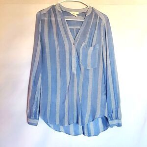 H&M Blue & White Striped Blouse V Neck Long Sleeve Top Shirt Tunic