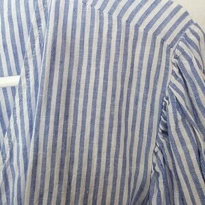 H&M Blue White Striped Linen Blend Coastal Long Sleeve Wrap Mini Dress Size L