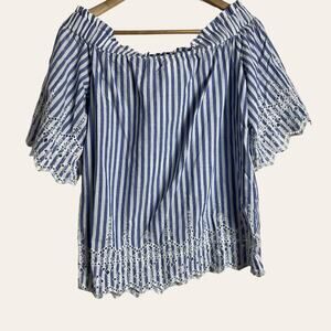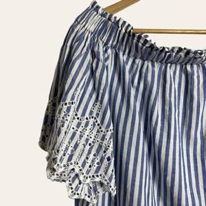 H&M Blue & White Striped Off-the-Shoulder Embroidered Top Size 4