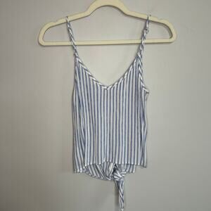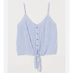 H&M Blue White Stripped Front Tie Button Down Cami Tank Top Women’s Size Small