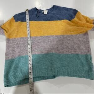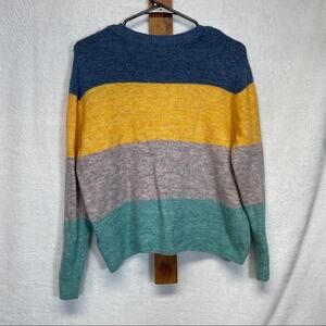 H&M Blue, Yellow, Gray & Green Colorblock Stripe Long Sleeve Sweater Size S
