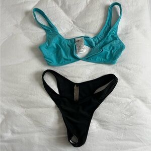 Dive into style with this H&M & Shein bikini set, featuring a vibrant blue top and a classic black bottom. Designed for a sleek and comfortable fit, this swimwear offers minimal coverage for a modern look. Perfect for making a splash at the beach or pool.
