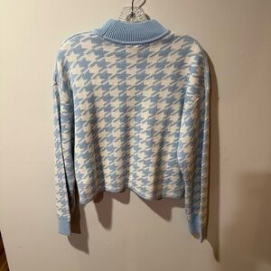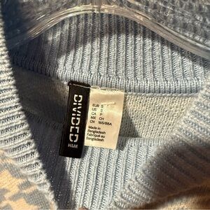 Embrace warmth and style with this H&M sweater, featuring a chic cowl neck and a striking blue and white color palette. The soft, fuzzy material ensures comfort, while the cropped design adds a modern touch to your wardrobe.