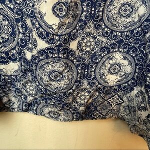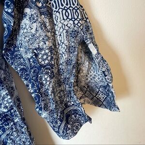 H&M Blue and White Floral Printed V-Neck Tunic Size XL