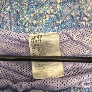 Stylish blue swim trunks with a white speckled pattern. Perfect for beach days.