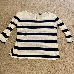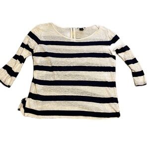 H&M Blue and White Striped 100% Linen 3/4 Sleeve Top Zip Up Back Women's Large