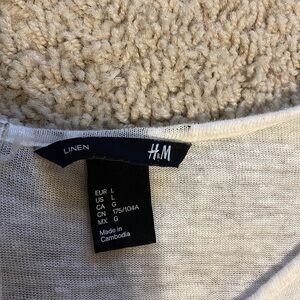 The H&M Blue and White Striped 100% Linen 3/4 Sleeve Top is a stylish and versatile piece perfect for casual occasions. This vintage-inspired blouse features a zip-up back for easy wear. Made from breathable linen, it offers a comfortable fit for the warmer seasons of summer, fall, and spring. The classic blue and white stripes make it a timeless addition to any woman's wardrobe, and the regular fit ensures a flattering silhouette. Machine washable for added convenience, this top is a must-have for those looking for a chic and casual style.