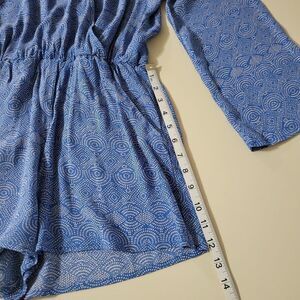 H&M Blue Geometric Print Bell Sleeve V-Neck Romper