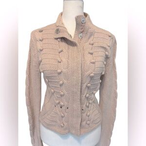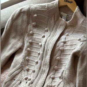 H&M Blush Pink Cardigan - a crochet tufted dot cable knit design. Size Small