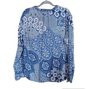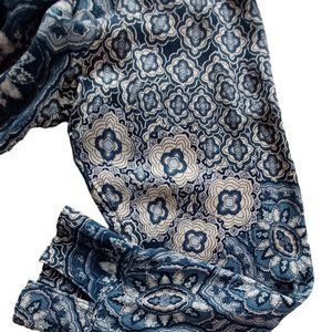 H&M Boho Blue and White Print V-neck Blouse size 6
