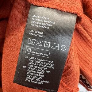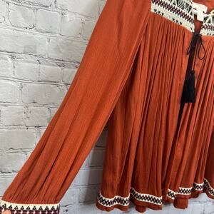H&M Boho Peasant Blouse Orange Embroidered Tunic Top Size 10 M Ethnic Festival Flowy
