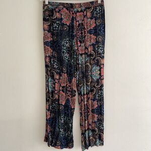 HM Boho Pull On Pants Size 8 Colorful Paisley Damask Floral Pockets Relaxed Fit