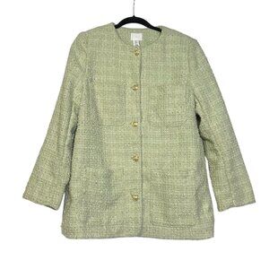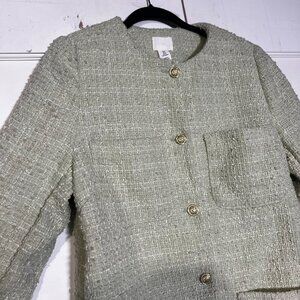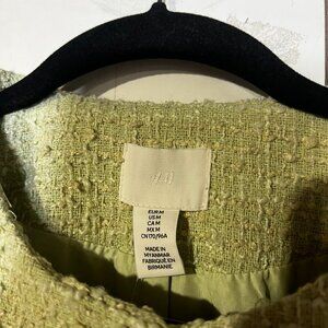 H&M Boucle Jacket Pistachio Green and White Gold Buttons Size Medium Preppy NWT