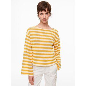 H&M Boxy Bell Sleeve Boat Neck Jumper in Yellow/White Striped Nautical Beachy