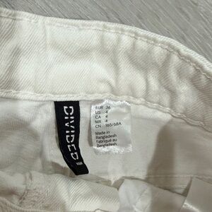 Stylish white denim shorts with a distressed hem. Perfect for casual wear.