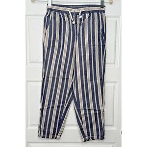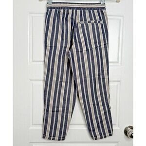 H&M Boys Striped Cotton Pants Size 7-8Y Blue White Roll Tab Cuffed Drawstring
