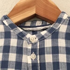 Good Condition. Collarless button up shirt. Preppy. Leather logo on pocket. Spring. Summer. Breathable cotton. School.