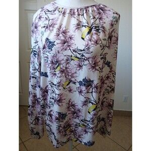 H&M Brand Women's Multi-Color Long Sleeve Floral Top Large Bird Butterfly Spring