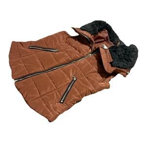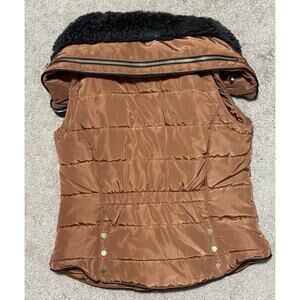H&M Bronze Brown Puffer Vest Sleeveless Jacket Size Small Faux Fur Collar Zipper