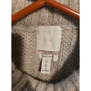 This H&M Alpaca Blend Rib-Knit Sweater in a warm brown tone offers both style and comfort with its slightly oversized fit. Made from a premium blend of Alpaca (40%), Polyamide (33%), and Wool (27%), it features a round ribbed neckline and wide raglan sleeves, creating a cozy and relaxed silhouette. Perfect for layering and staying warm, this sweater is size XS but designed to provide a looser, effortlessly chic fit.