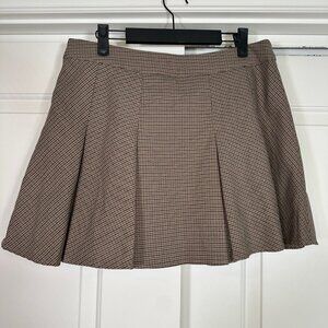 H&M Brown Houndstooth Pleated Mini Skirt