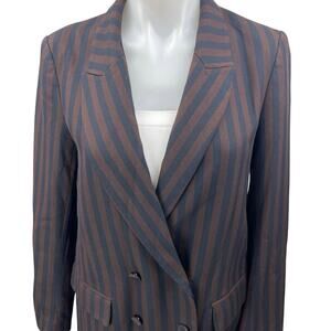 H&M Brown Black Striped Double Breasted Notch Collar Blazer Coat Jacket Size 6
