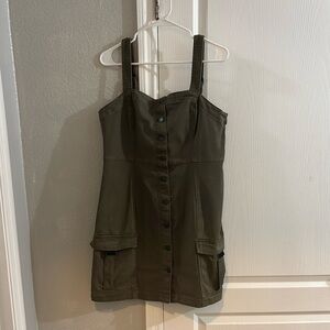 This casual mini sundress from H&M features a square neckline and a buttoned front, perfect for a relaxed day out. The sleeveless design and structured silhouette offer a comfortable yet stylish fit, making it an ideal choice for warm weather. Available in a rich brown color, this dress effortlessly combines simplicity with elegance.