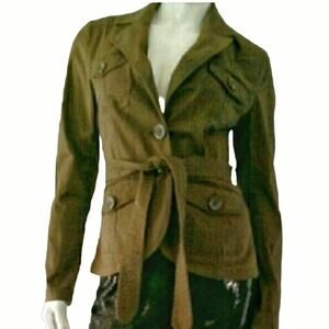 H&M Brown Button Front Cargo Utility Jacket w/ tie belt