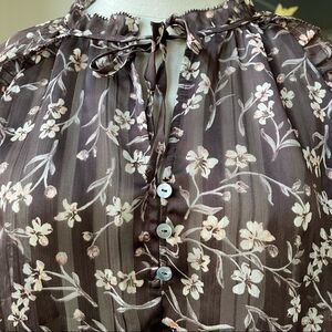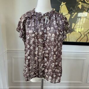 H&M Brown Floral Lightweight Chiffon Top 8 NWT