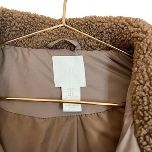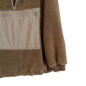 H&M Brown Sherpa Nylon Zipper Pocket Quarter Zip Pull Over Sherpa Jacket