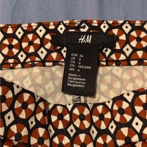 Stylish brown pants with a white geometric pattern. Perfect for casual wear. Zipper on the side. H&M women’s size 6. In Excellent condition.