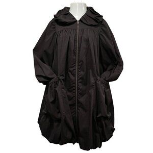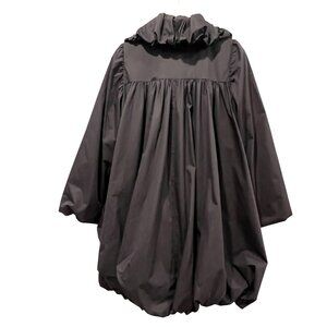 This lined zip-front jacket features long sleeves with a bubble hem, a round ruched collar, large front pockets, and a bubble hem. Excellent condition, washable, cotton, dark gray, 4