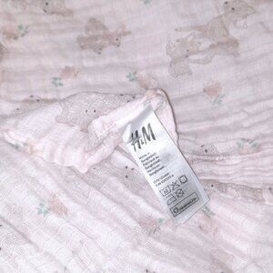 H&M Bunny Deer Baby Pink Muslin Lovey Security Blanket 22" X 22"