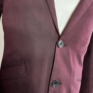 Stylish H&M blazer in rich burgundy. Features a classic two-button design. Perfect for formal or casual occasions.