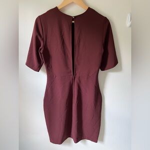 Short sleeves Open slit back with button Sheath style Burgundy Above knee length