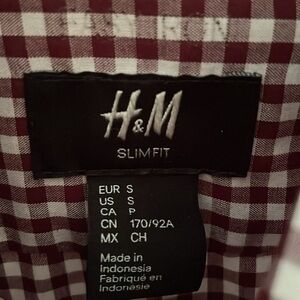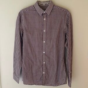 H&M Burgundy Maroon White Gingham Check Plaid Button Down Dress Shirt Men S