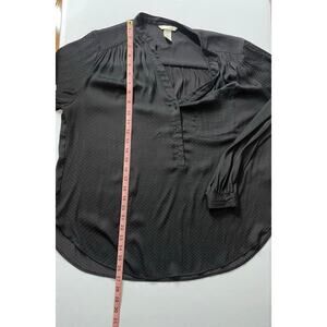 H&M ¾ Button Down Satiny Long Sleeve Blouse with Pocket Sz 10 Black Patterned Casual Office