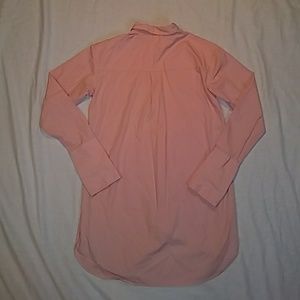Long shirt in a cotton weave with a narrow collar, buttons down the front, long sleeves with wide, buttoned cuffs and a rounded hem with slits in the sides. Slightly longer at the back.