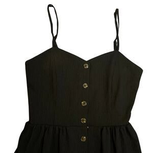 H&M Button Front Midi Woven Adjustable Straps Back Smocking Gray Black Size 2