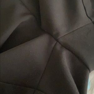 Minor pilling along inseam. Button closure along front. 78% polyester, 19% viscose, 3% elastane.