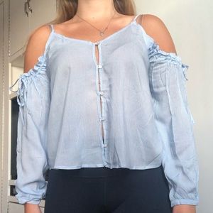 Button down top with a spin - cold shoulder ruffle tie detail sleeves