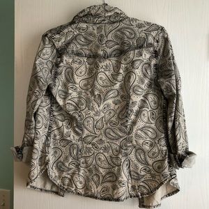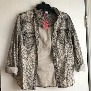 A button up grey and white made by H&M. It is in perfect condition with the tags still on.