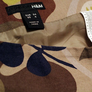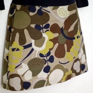 Unique floral/camouflage mini skirt. Canvas fabric. Fully lined, side zipper closure. Length is 12.5 inches. Waist measures 28 inches. Worn only a couple of times. Excellent condition.