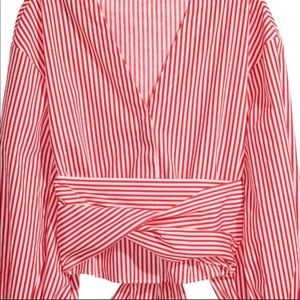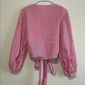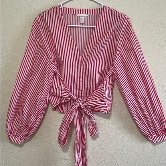SOLD‼️ I nicknamed this the candy cane top. You can tie it in the front or back. This fits me a little big but I was able to get away with it because you can tie it.