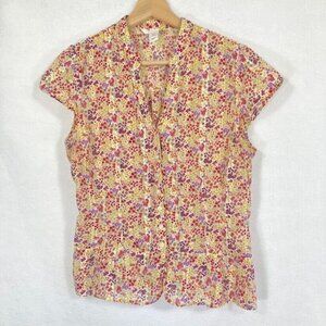 H&M Cap Sleeve Ditsy Floral Print Split Neck Button Up Shirt Size 12