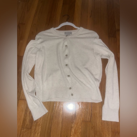 Simple thin cardigan, perfect basic and layering! Light cream color. Buttons up. Size Medium - fits smaller.