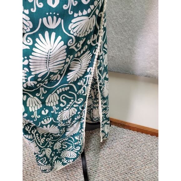 H&M Cardigan Womens Size 8 Green Floral Lace Trim 100% Viscose Open Front Slit